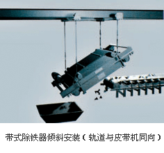 懸掛安裝方式分傾斜、水平兩種,它們均與除鐵器定位在輸料帶的某個位置工作有關(guān)。