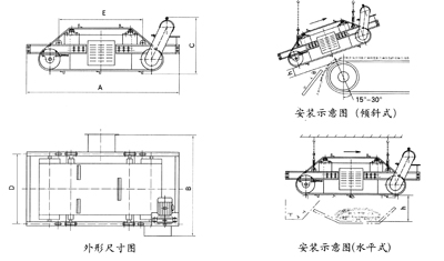 總體尺寸小,可稱為輕型永磁帶式除鐵器,長度、高度分別是C型的:70%、86%。