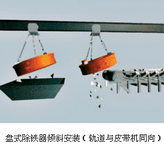 懸掛安裝方式分傾斜、水平兩種,它們均與除鐵器定位在輸料帶的某個位置工作有關(guān)。